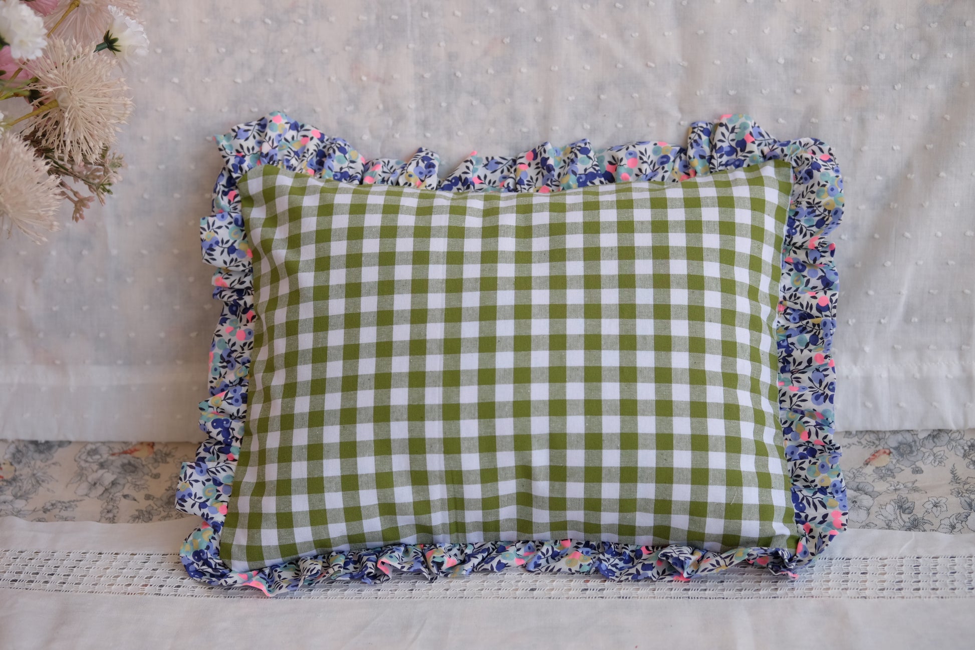 Z-Cojín con estampado de vichy y volantes de Liberty
