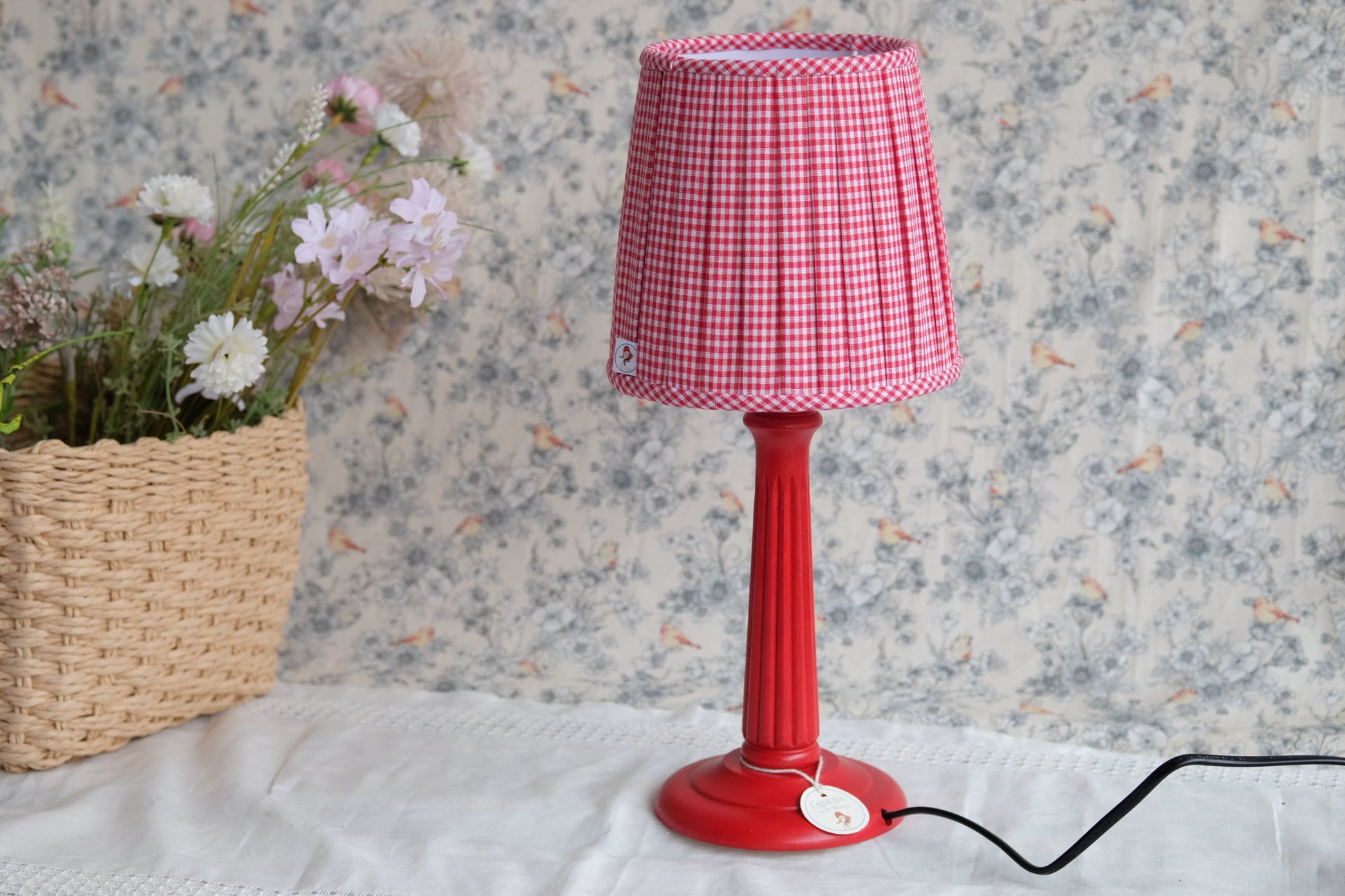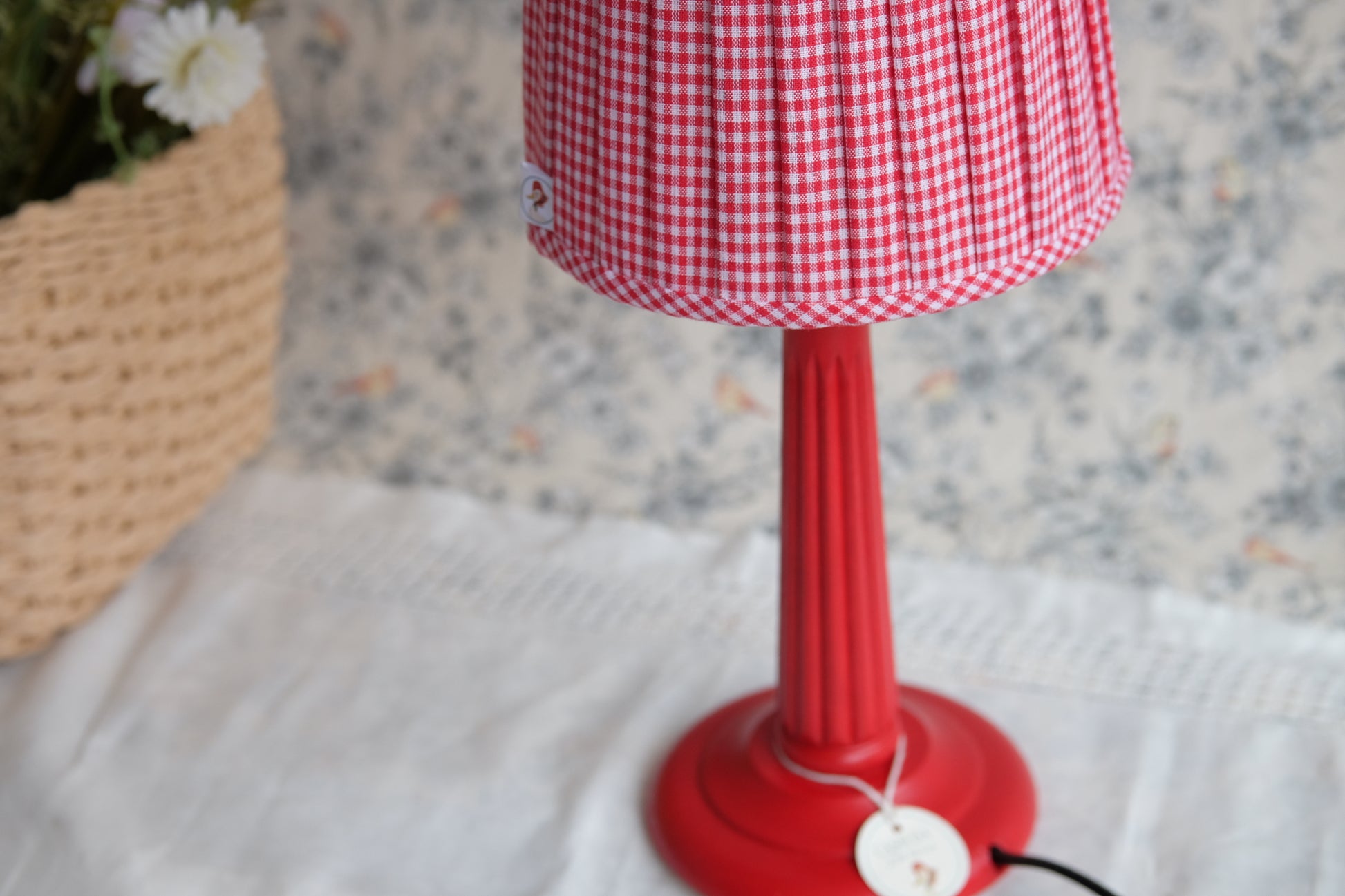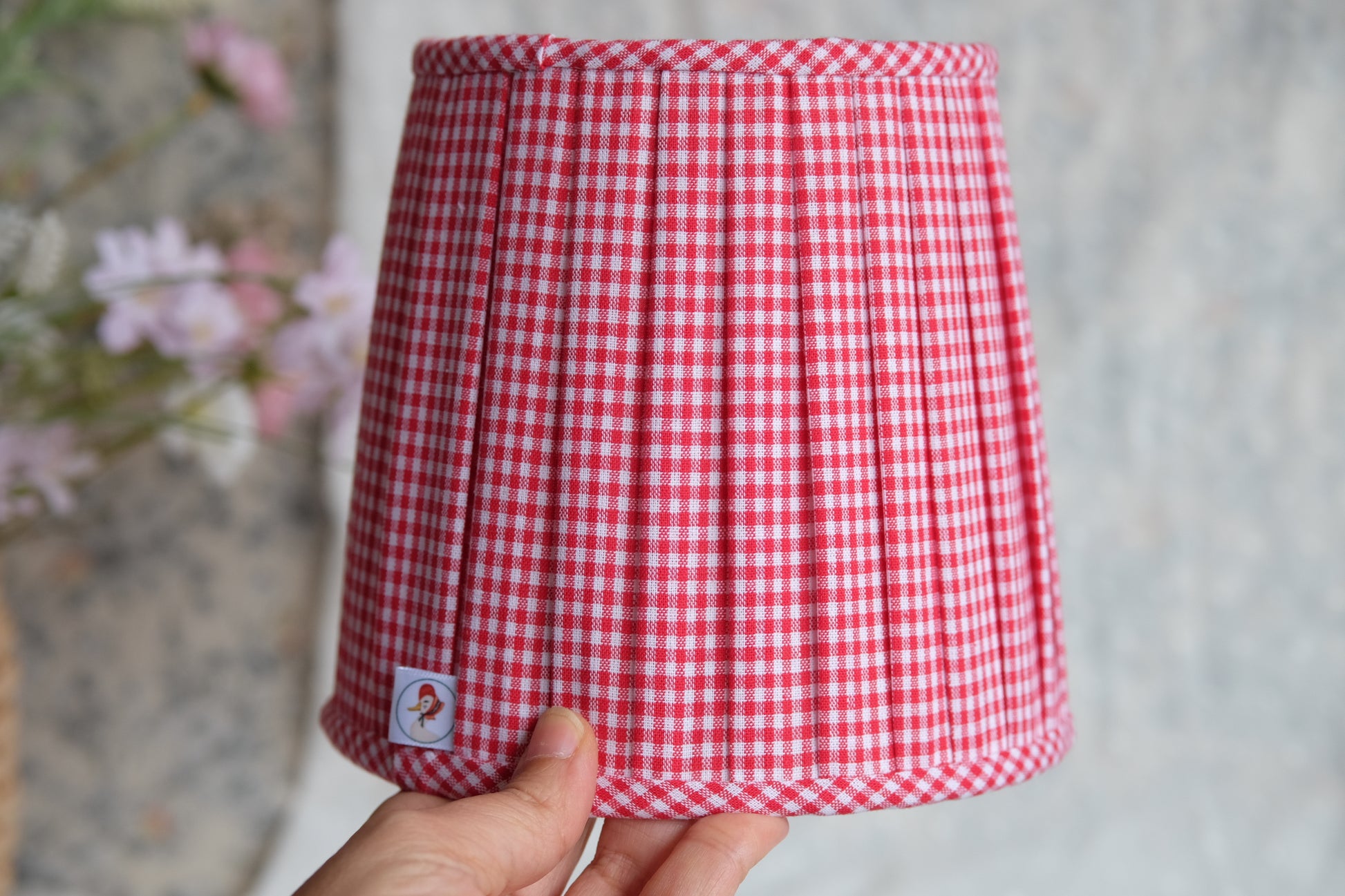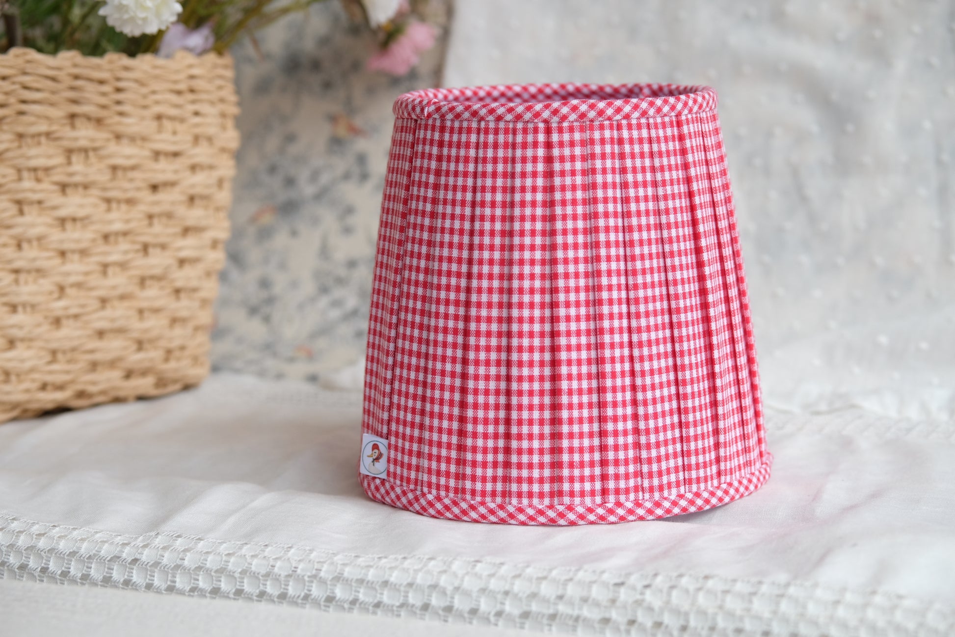 Tulipa plisada en algodón 100% con estampado de vichy rojo de 2mm.